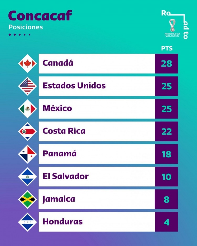 3月28日讯 中北美区世预赛倒数第二轮战罢,加拿大获得直通世界杯资格。美国、墨西哥、哥斯达黎加在本轮全部取胜。目前美国、墨西哥同积25分,美国凭借净胜球优势位居第二。哥斯达黎加积22分位列第四。